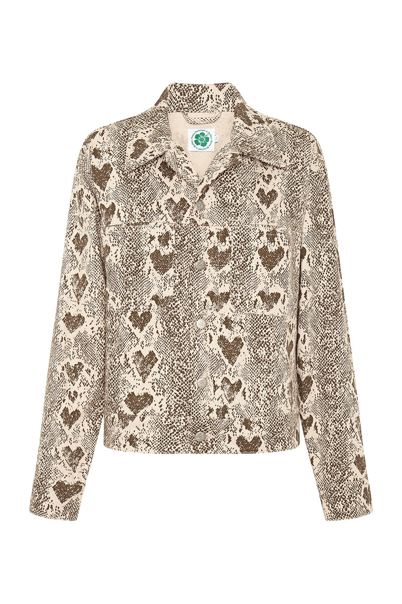 Our timeless Heart Snake print is back and bolder than ever. The Nicolas Jacket is a modern classic, cut from 100% cotton drill with our signature screen print that never goes out of style. Adjustable cuffs and hem let you wear it your way - relaxed or cinched.