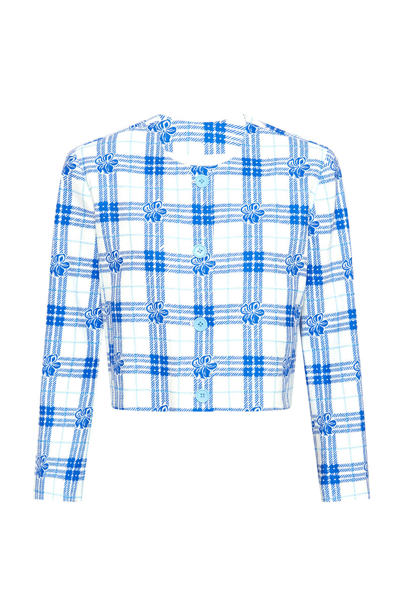 Hibiscus Plaid Cropped Jacket - Blue/White