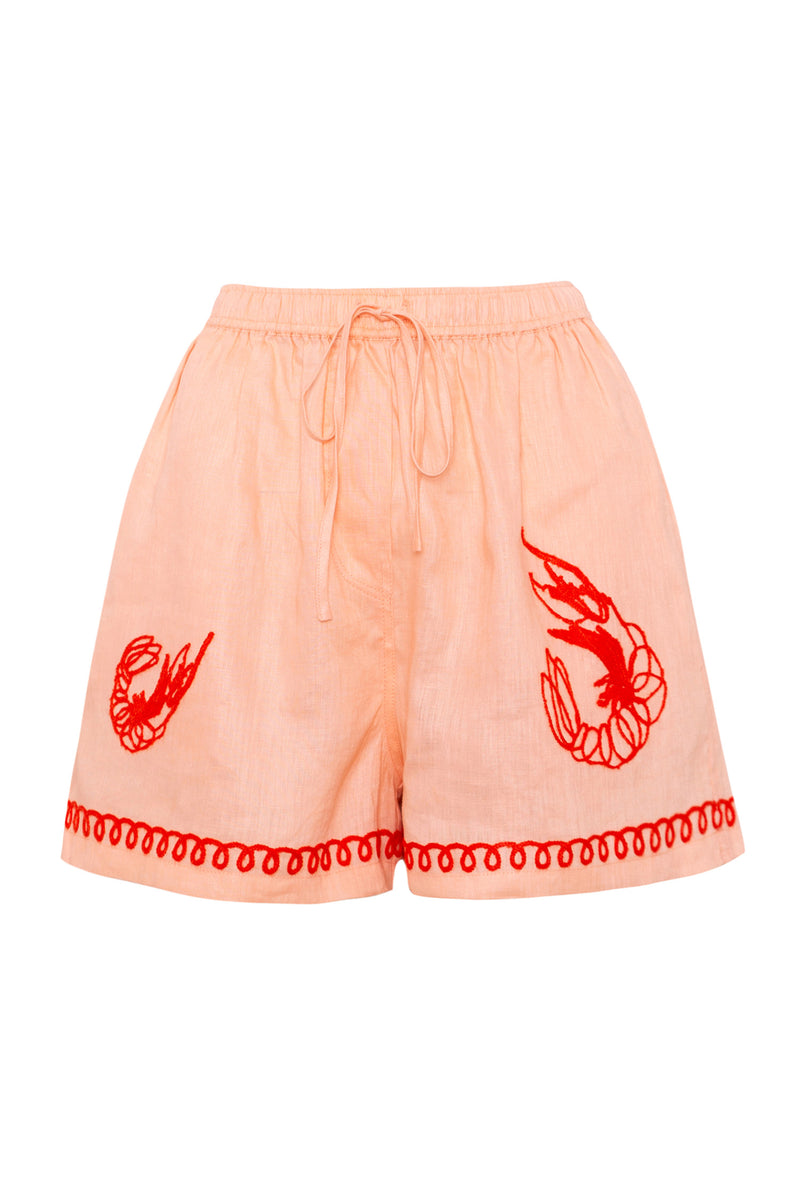 Lobster Embroidered Shorts - Peach