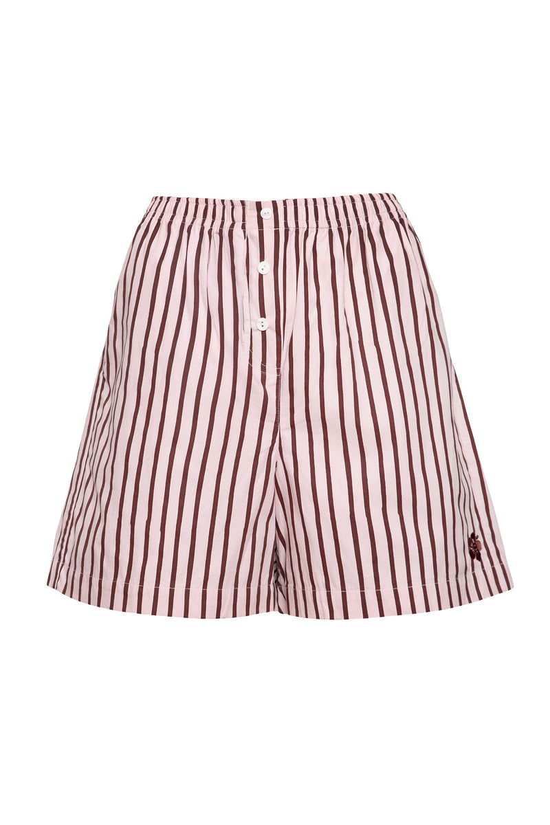 A effortless cotton poplin boxer short, now in the Thin Stripe Print with Happy Hibiscus embroidery. This relaxed style comes with an elastic waistband that can be worn either high or low, allowing you to achieve your preferred fit.