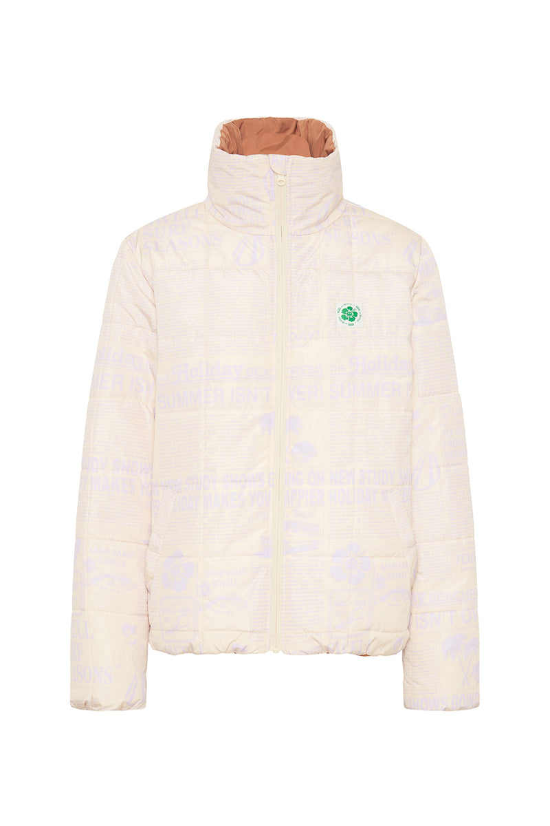 - Allover print to solid reversible fashion puffer jacket
