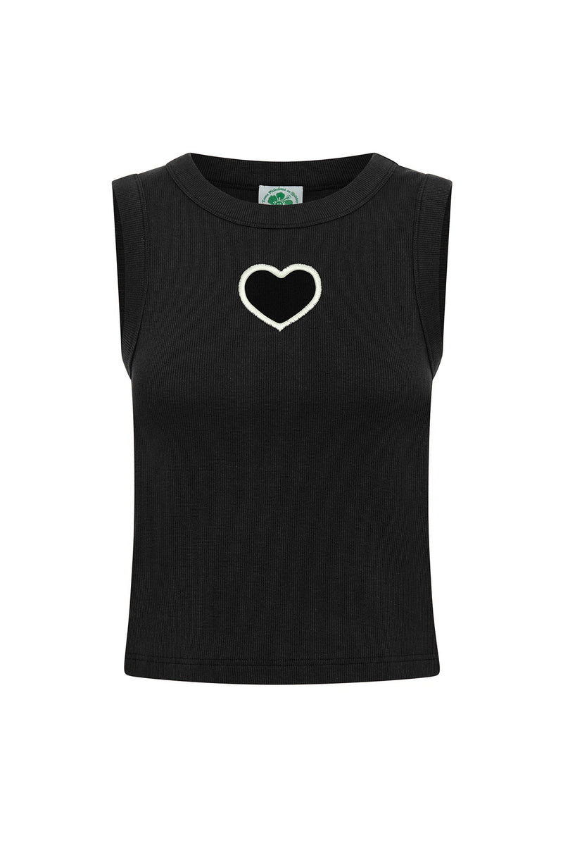 Our summer staple Ribbed "Heart Tank" now available in an all new Black colour-way.