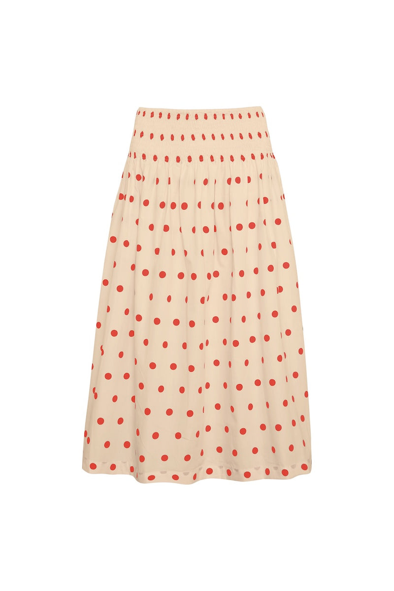 Polka Shirred Midi Skirt - Sand/Red